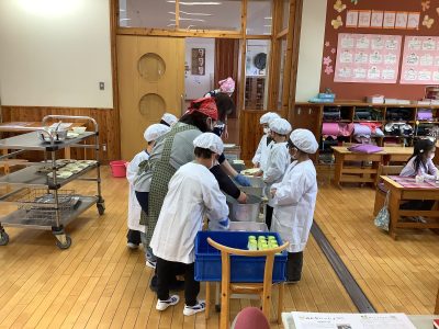 1年生は,「何から手をつけたらいいのか」質問したり,少し緊張したりしていましたが,おいしくいただいていました。