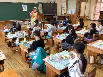 4/4に入学した1年生も,今日(4/10)から,給食を開始しました。初めての準備に戸惑いましたが,先生方のお手伝いもあり,無事に,給食の準備を終えることができました。