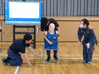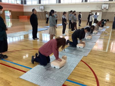 昨日(4/30)の放課後,峡北消防本部の職員を講師にお招きして,救急法の講習会をしました。はじめに「心肺蘇生法」について,講習を受けた後,参加者全員が,実践しました。