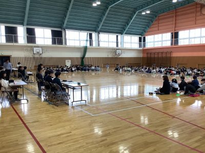 本日(5/2),2校時,3~6年生は体育館に集合し,第1回児童総会をしました。「①児童会のテーマについて②児童会活動について③年間活動計画について④委員会活動について」話し合いました。どのクラスも,事前に資料を読み,意見をまとめて発表し,今年度の方針を話し合った児童総会になりました。