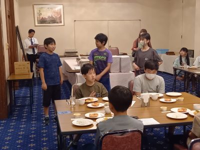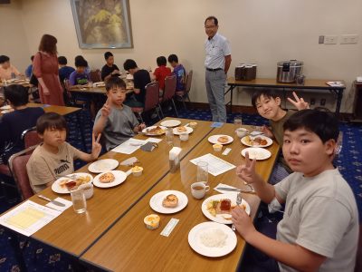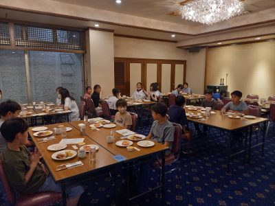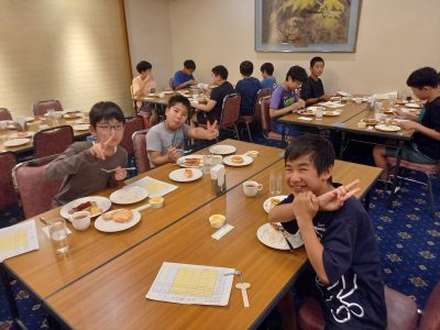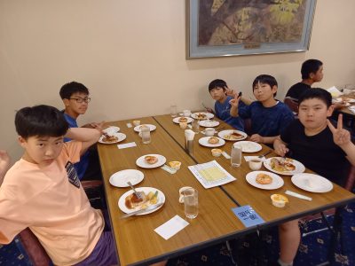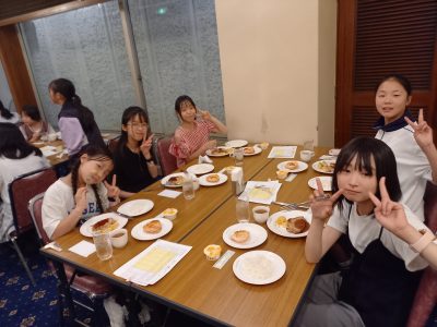 予定通りにホテルへ到着し、到着式を行いました。夕飯を食べた後は、部屋で友達と過ごしています。明日はいよいよ最終日です。