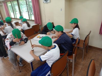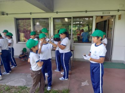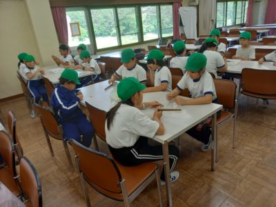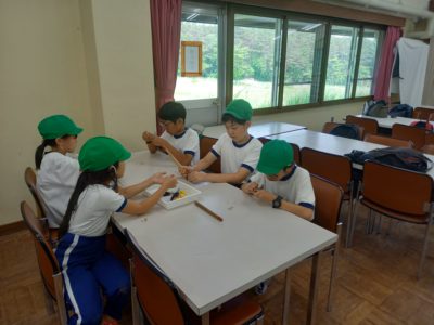 自然教室最後の活動は焼杉のキーホルダーづくりです。好きな動物を選び、焼いたり、金具をつけたりしながら作品を仕上げました。思い出のキーホルダーとなりました。