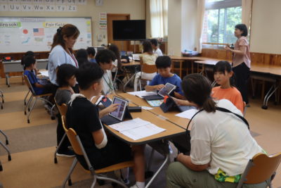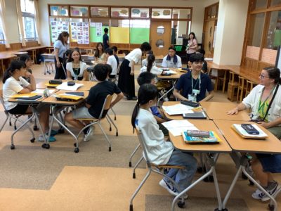 6/30(月)に、韮崎市と姉妹都市である、アメリカのフェアフィールド市から留学生が来校しました。当日は、6年生と交流会を行った後、一緒に給食を食べたりゲームをしたりしました。交流会では、韮崎市や修学旅行の紹介をしたり、留学生に質問をしたりしました。子どもたちは、これまで学習したことを生かして、留学生とのコミュニケーションに挑戦していました。