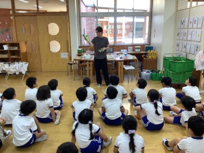 本日(8/27)の1校時,2年生は,生活科「やさいづくり名人」の授業の一環として,とうもろこしの皮むき体験をしました。はじめに,管理栄養士の白倉先生から,皮むきのやり方や注意点についてのお話を聞きました。その後,クラスごとに分かれて,合計115本の皮むきを体験しました。みんな初めての皮むきでしたが,上手にできました。今日皮むきをしたとうもろこしは,給食室で茹でて,全校の給食に出されました。