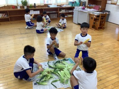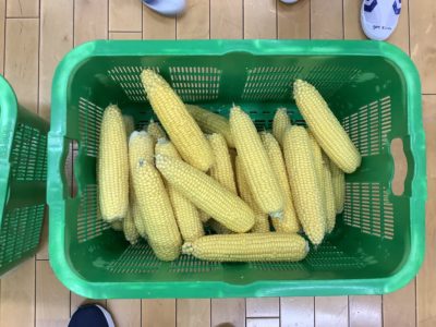 とうもろこしの皮むき体験をしました。