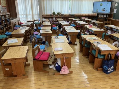 本日(9/1)は,防災の日です。本校では,休み時間に地震が起こったときを想定した避難訓練をしました。休み時間,先生がいなくても,自分たちだけで,机の下に隠れるなど,初期対応がしっかりできていました。画像は,1・2年生です。