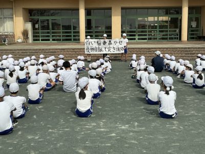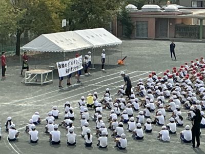 本日(9/18)の1校時に,「運動会はじめの会」をしました。はじめに全校で集合して,児童会から,運動会のテーマ「優勝めざして心をひとつに! 笑顔の桜をさかせよう!」の発表をしました。その後,赤白に分かれて,組ごとで,はじめの会をしました。赤組のテーマは「みんなの力で突き進め,友情の絆を勝利の空に」,白組のテーマは「白い稲妻轟かせ優勝目指して突き進め」です。今日から,運動会特別日課が始まり,10/4(土)に秋季大運動会を実施する予定です。