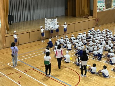 2025年10月1日 / 最終更新日時 : 2025年10月1日 niraes ブログ 10/1の全校練習 本日(10/1)も全校練習をしました。雨が降っていたので,体育館での練習でした。マットを積み重ねて朝礼台をつくり,開閉開式の練習をしました。その場で行進して,全体を通して練習しました。最後に「赤白タイム」をし,色ごとに,応援旗の紹介をしていました。