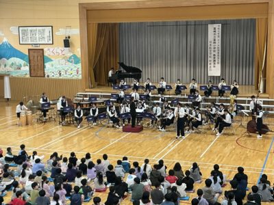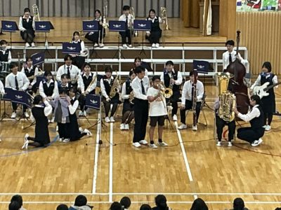 本日(11/5)の13:30~14:45に,PTA総務部主催による教育講演会(日本航空高校吹奏楽団によるコンサート)をしました。吹奏楽団の皆さんは,ディズニーの曲をはじめ,楽しい曲をたくさん演奏していただきました。演奏の間に,代表児童による楽器の演奏体験や指揮体験もさせてもらいました。お忙しい中,本校の児童のために,すばらしい一時を提供していただきました日本航空高校吹奏楽団の皆さんに感謝いたします。