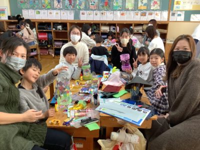 11月18日の午前中,3年生が親子研修(親子レク)を実施しました。今回の研修は,親子で力を合わせる「オリジナルランプづくり」でした。制作中は,親子で楽しそうに会話を弾ませたり,「ここはこうしよう」と作業を分担したりと,協力し合う姿が多く見られました。特に,おうちの方が子どもたちの自由なアイデアを尊重し,温かく見守る姿が印象的で,それぞれが思い思いのスタイルで,世界に一つだけの素敵なランプをつくっていました。今回の活動のキーワードは「3つの間」。大切な「仲間」と,豊かな「時間」を共有したことで,いつもの教室がとっても素敵な「空間」になっていました。完成したランプの中にライトを入れて光らせるのが待ち遠しいですね。御参加いただいた保護者の皆様,御協力ありがとうございました。
