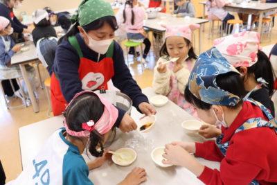 11月27日,生活協同組合ユーコープさんを講師にお招きし,3年生が豆腐づくりの学習を行いました。2学期の総合的な学習の時間に,大豆について学んできた3年生にとって,今回の体験は学びを深める貴重な機会となりました。豆乳とにがりを使って,自分たちで豆腐づくりに挑戦しました。自分たちで手づくりした出来たての豆腐を味見すると,「おいしい!」と自然と笑みがこぼれていました。貴重な食育体験となりました。御協力いただきましたユーコープの皆様,ありがとうございました。